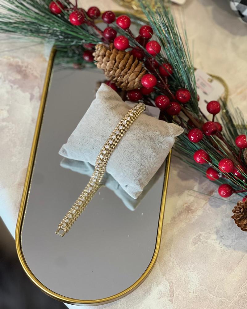 Hasır örgü taş detaylı gold çelik
