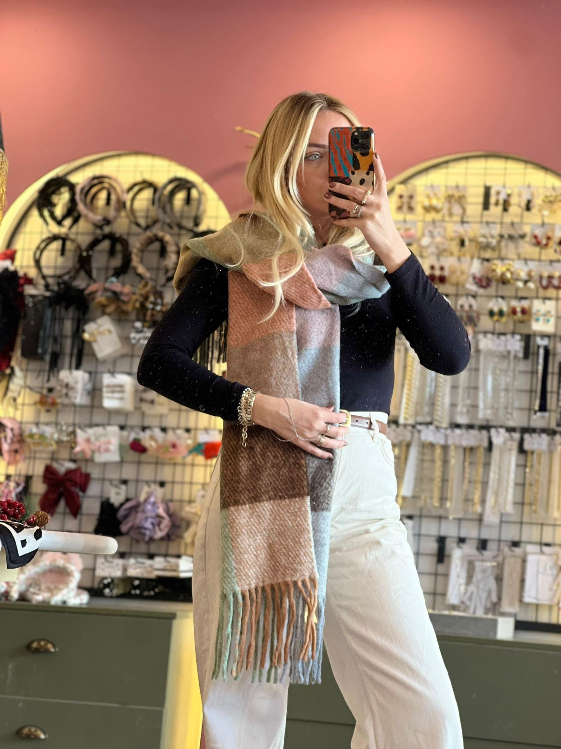 Kahve pudra ekose şal
