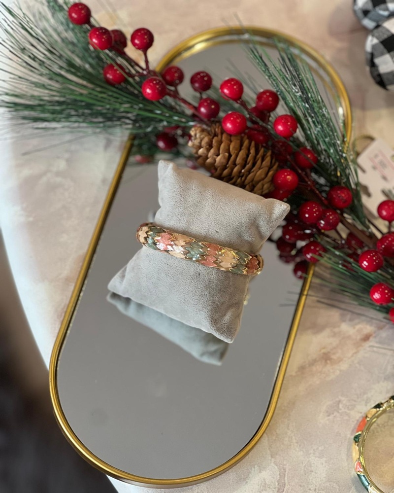 Pudra / yeşil zigzag mineli kelepçe