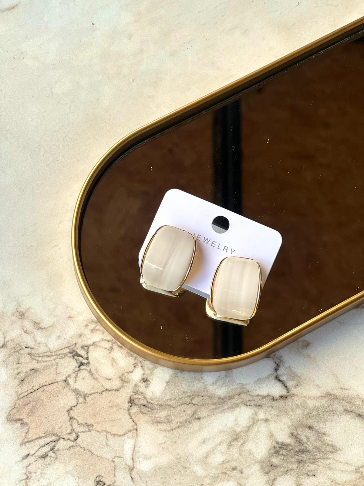Doğal sedef dokusunun sade güzelliğini modern çizgilerle buluşturan sedefli kırık beyaz küpeler, zarif detaylarıyla her kombine sofistike bir hava katar. Altın çerçeveye sahip tasarımı, ışığa göre değişen sedef yansımalarıyla asil bir ışıltı sunar.